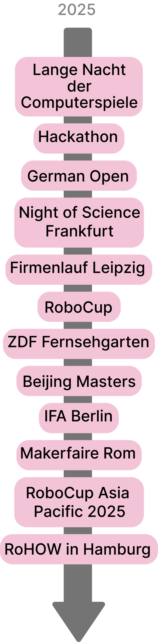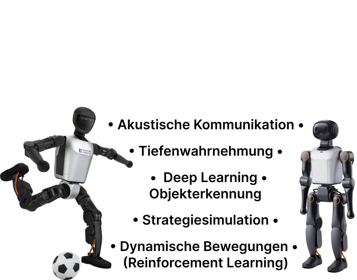 Unser Team ist eins der erfolgreichsten Roboterfußballteams der Welt – 2018 und 2025 haben wir den Weltmeistertitel errungen und haben bei der Olympiade der humanoiden Roboter in China den zweiten Platz belegt. Insgesamt sind wir in den letzten neun Jahren über konstante Platzierungen auf der Weltmeisterschaft zu einer festen Institution geworden. Wir unterstützen kleinere Teams mit unseren Codereleases, arbeiten an aktuellen Forschungsfragen, ermöglichen Abschlussarbeiten und Praktika und qualifizieren die nächste Generation von SpitzeninformatikerInnen in unseren stetig laufenden Projekten.